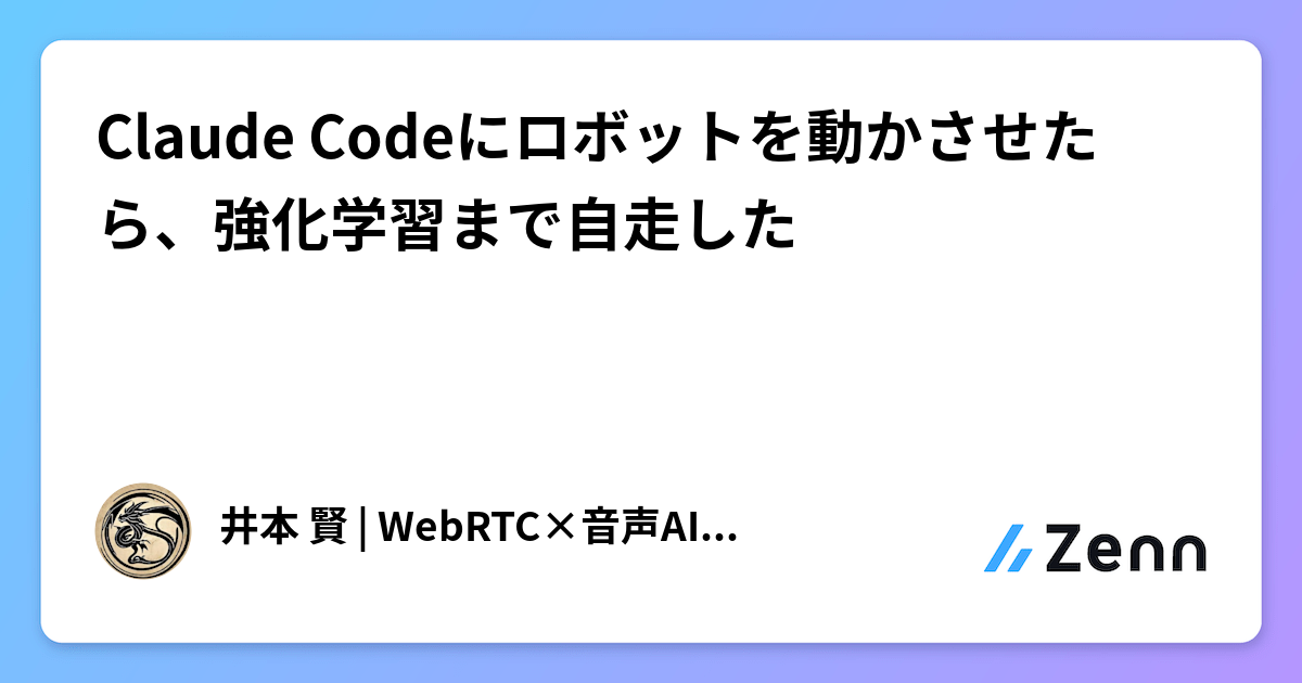 Claude Codeにロボットを動かさせたら、強化学習まで自走した フィジカルAIの時代が来た フィジカルAI という言葉をご存知でしょうか。 現実世界を認識し、判断し、物理的に行動するAIのことです。チャットボットが「テキストの世界」で完結するのに対して、フィジカルAIは「物理の世界」で動きます。ロボット、ドローン、自動運転 — これらを知的に制御するAIの総称です。 Zenn 9時間前