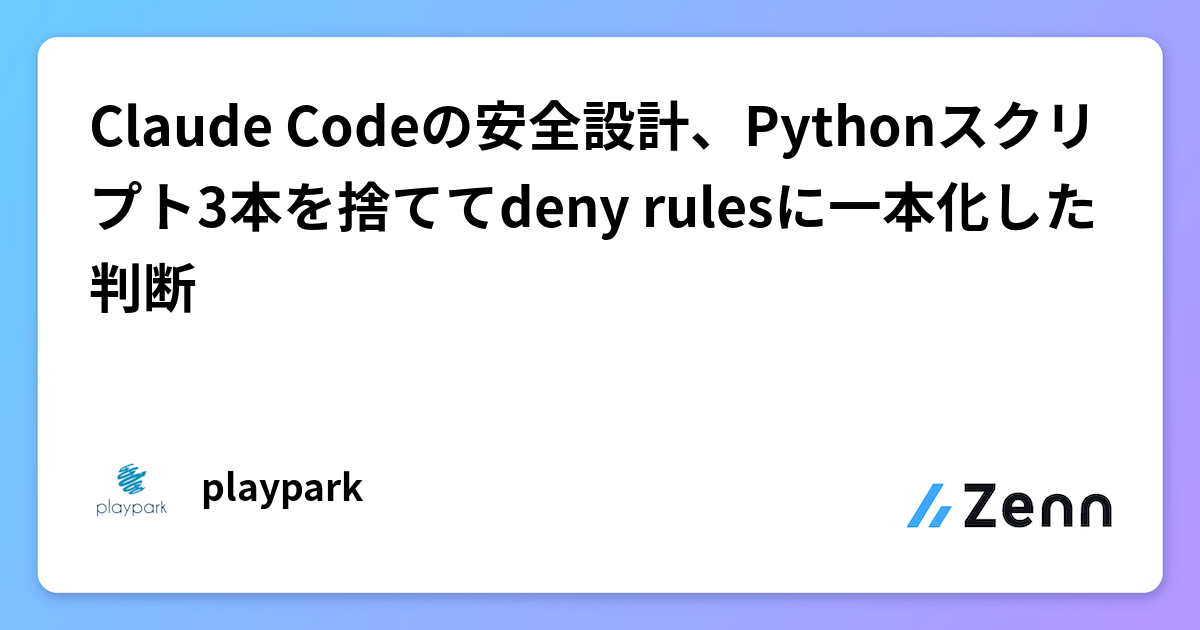 AI厳選 Claude Codeの安全設計、Pythonスクリプト3本を捨ててdeny rulesに一本化した判断 Claude Codeの安全設計において、複数のPythonスクリプトによる動的チェックをdeny rulesに一本化する上級者向け運用改善パターンが提示されています。 Zenn 9時間前
