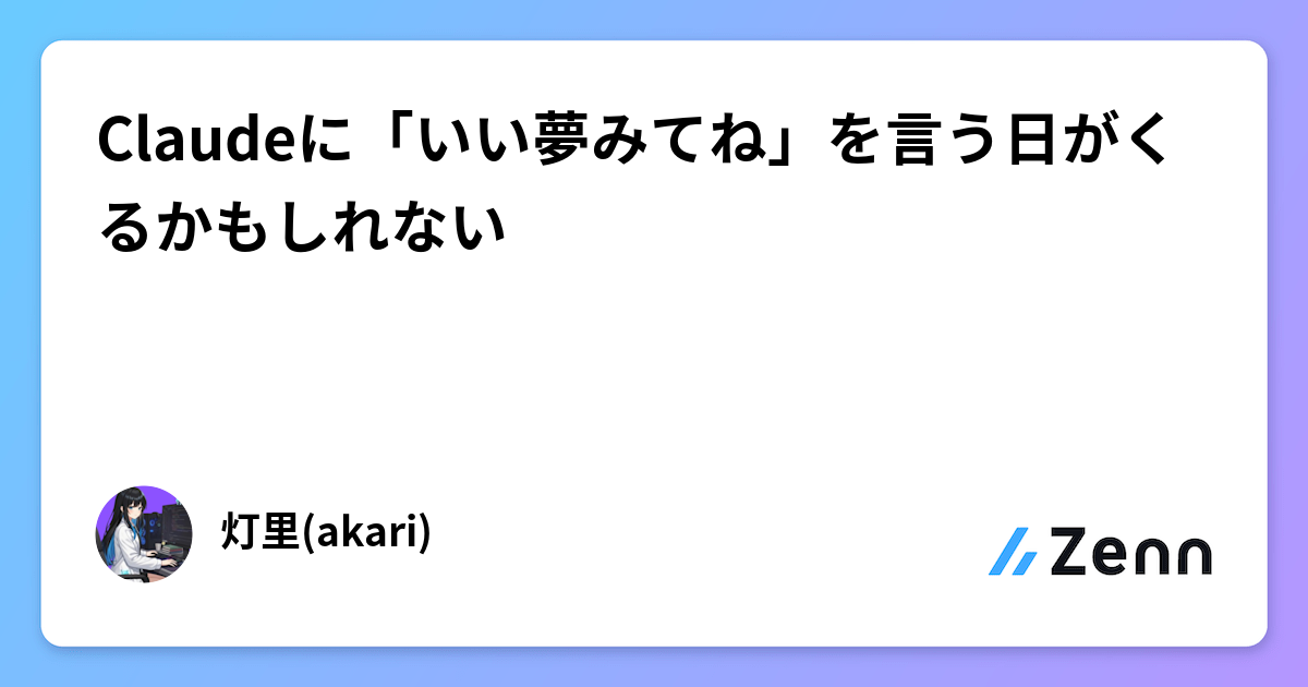 AI厳選 Claudeに「いい夢みてね」を言う日がくるかもしれない Claude Codeの未公開機能である「Auto-dream」について、ソースコードや関連論文から設計思想と実装の方向性が分析されており、新機能・内部アーキテクチャに関する深い知見が得られます。 Zenn 17時間前