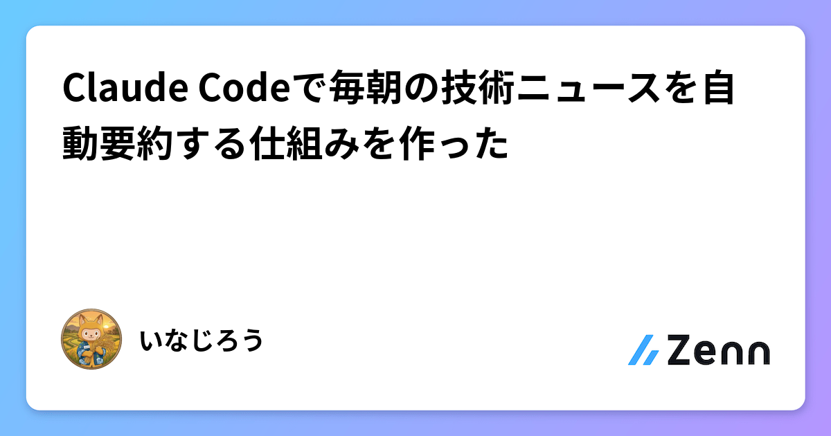 Claude Codeで毎朝の技術ニュースを自動要約する仕組みを作った 課題: 情報収集は続かない エンジニアとして技術トレンドのキャッチアップは大事だ。GitHub TrendingやHacker Newsを毎朝巡回して、気になるリポジトリや記事をチェックして……と頭では分かっている。 でも現実には続かない。 RSSリーダーを入れても「未読1000件」になって見なくなる。 Zenn 10時間前