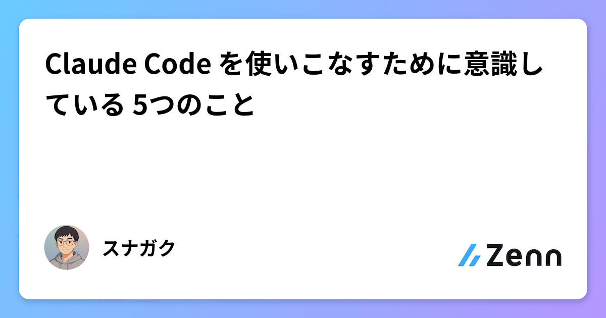 おすすめ Claude Code を使いこなすために意識している 5つのこと はじめに 僕自身、普段から Claude Code を使い個人開発や業務に取り組んでいて、スキルの自作や Agent Teams の活用などを行っています。 その中で、「Claude Code を上手く使えるかどうか」は、ツール自体の知識よりも、日々の向き合い方や考え方の部分が大きいと感じるようになりました。 はてブ 28 users 1日前